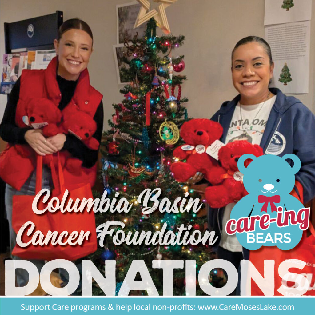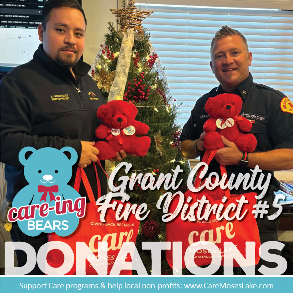 Thanks to your purchases and donations we’ve been able to donate bears to: the Columbia Basin Cancer Foundation, Grant County Sheriff’s office, Moses Lake Police Department and Moses Lake Fire District #5.