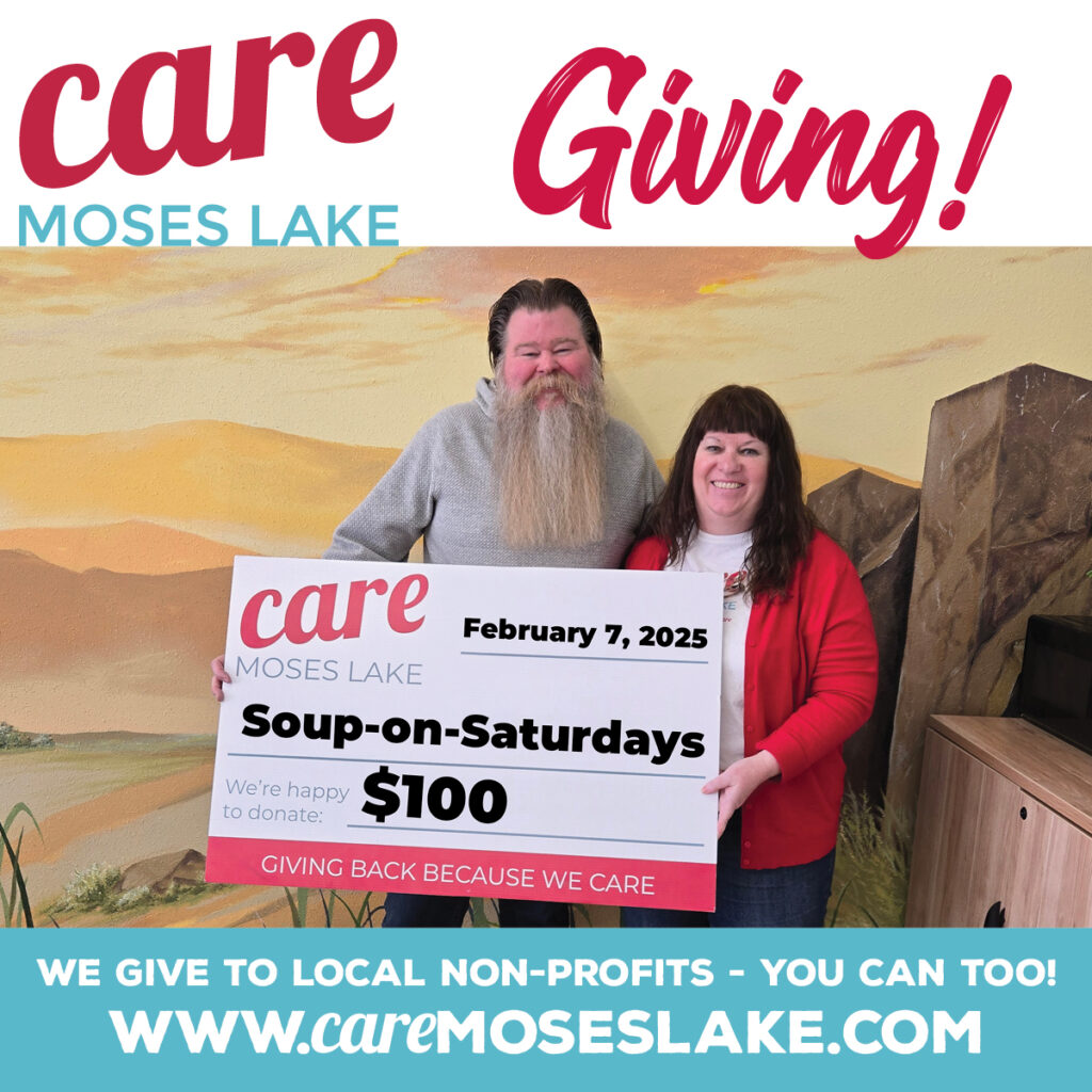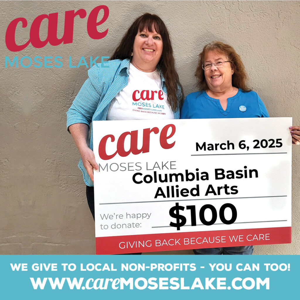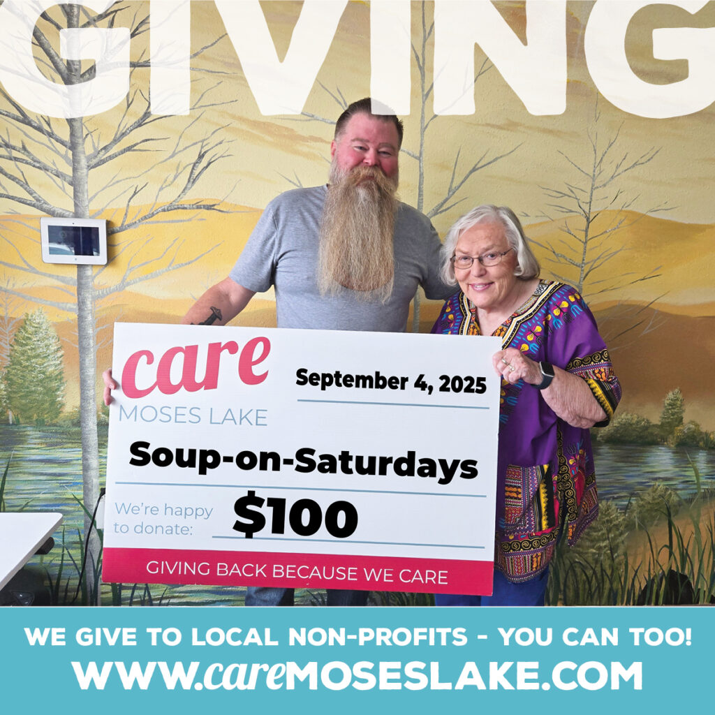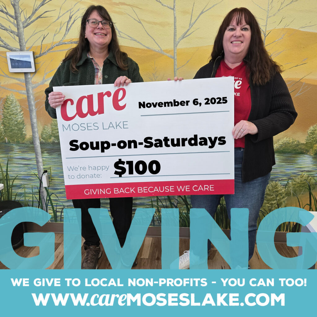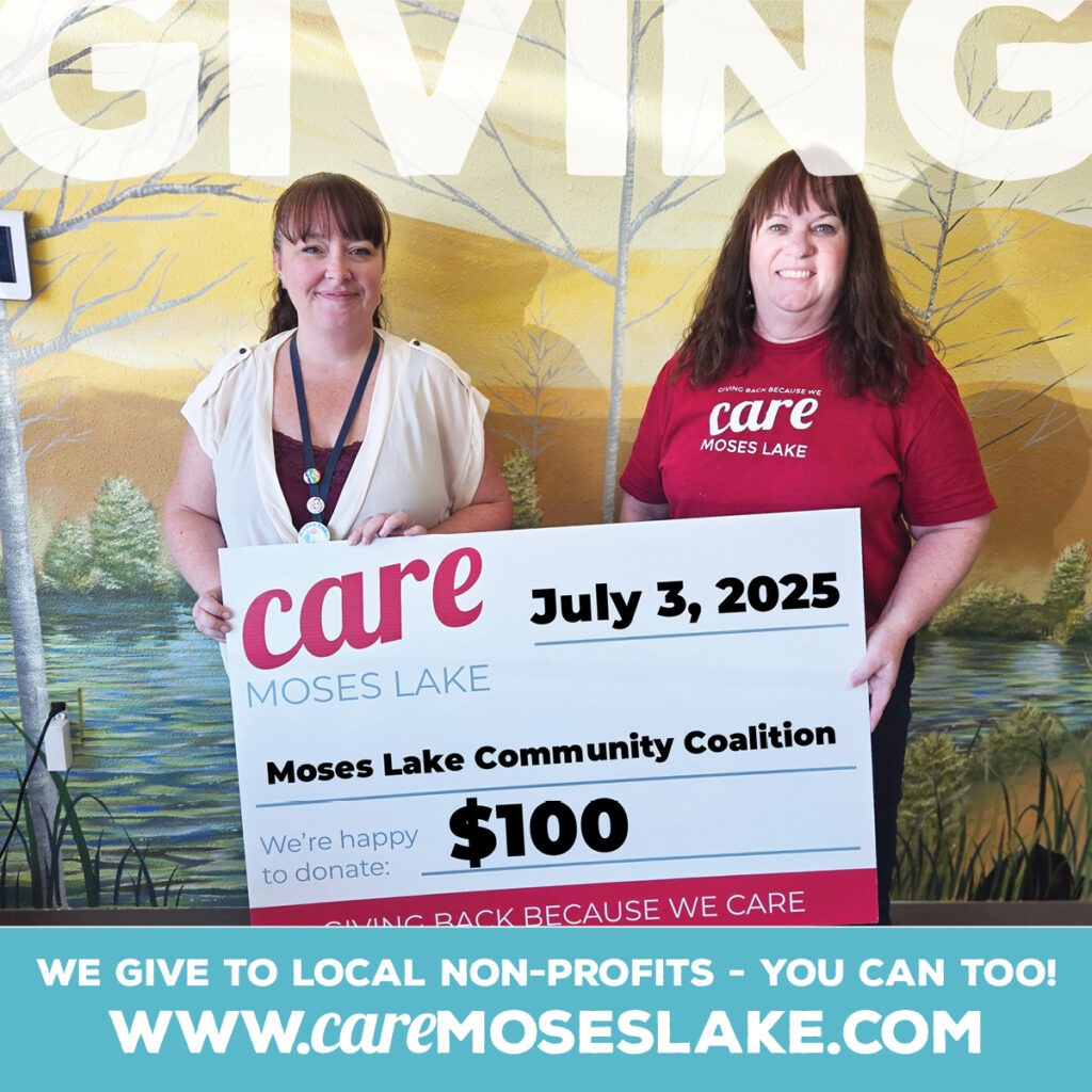 JOIN US MONTHLY! One lucky non-profit in attendance will WIN $100 for their non-profit, courtesy of Care Mosses Lake! Congratulations to our 2025 winners! We are happy to support your non-profit!